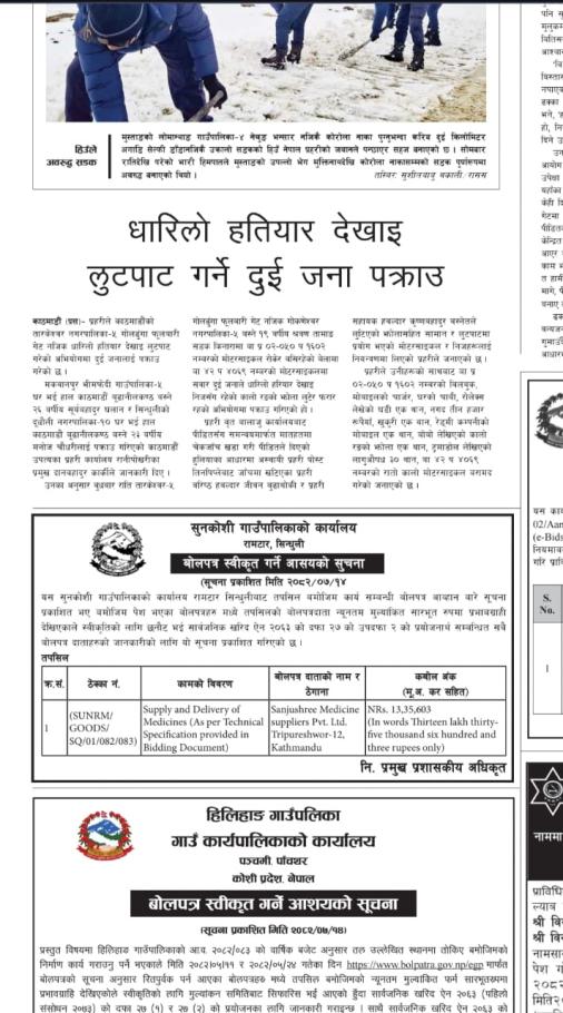 » बाेलपत्र स्वीकृत गर्ने आसयकाे सूचना ।