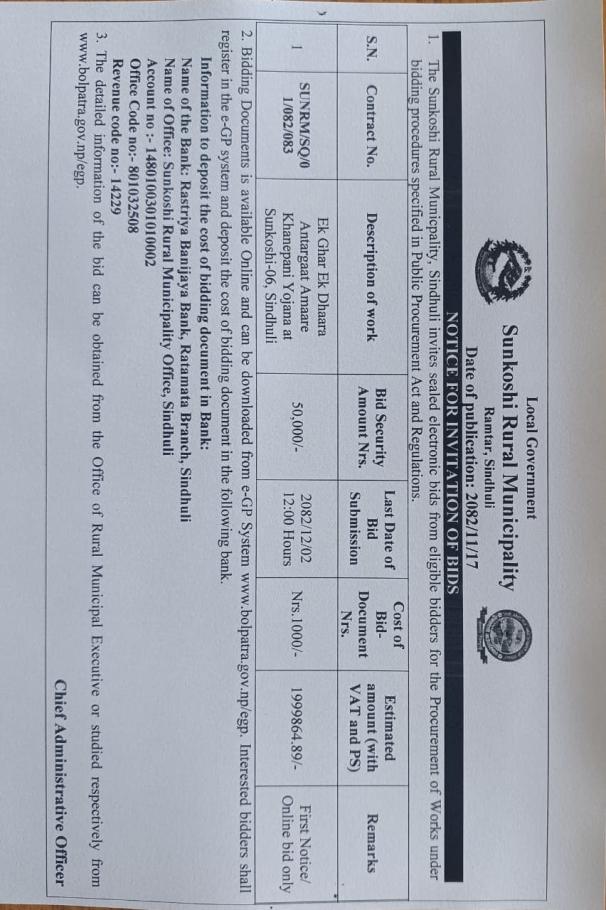 Notice For Invitatio of Bids