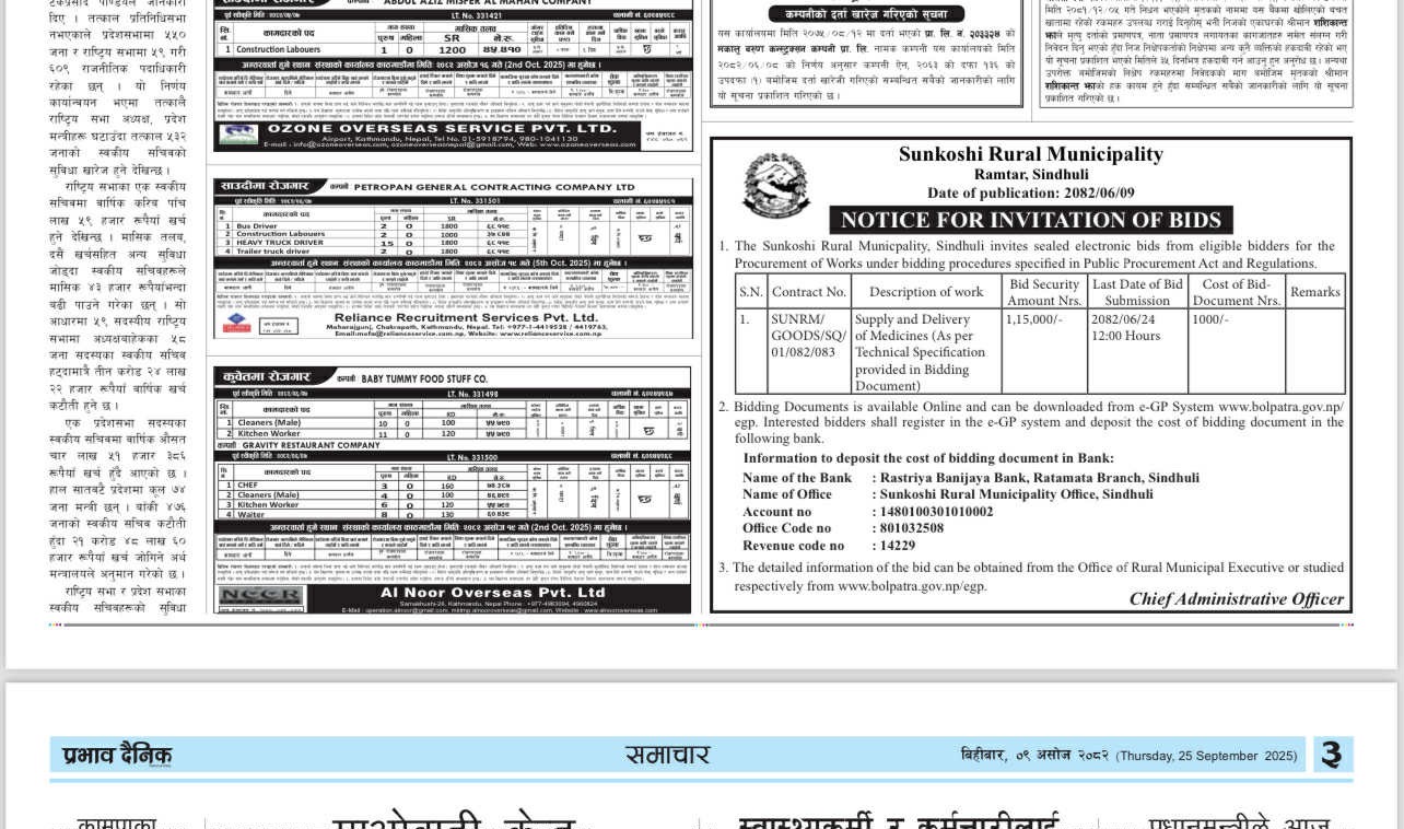 बोलपत्र आह्वान सम्बन्धि सुचना !!