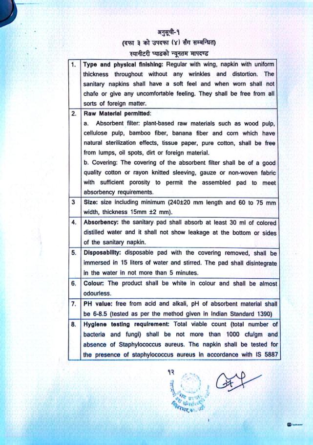 सेनिटरी प्याडकाे दरभाउ पेश गर्ने सम्बन्धी सूचना